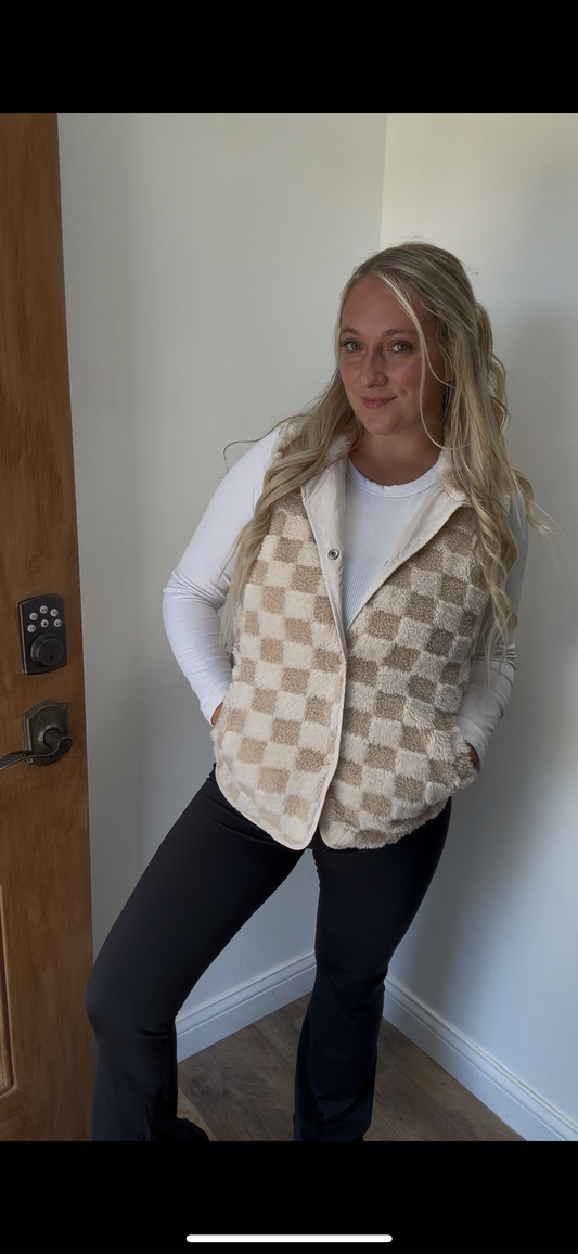 LDC Sherpa Checkerboard Snap Button Vest Jacket