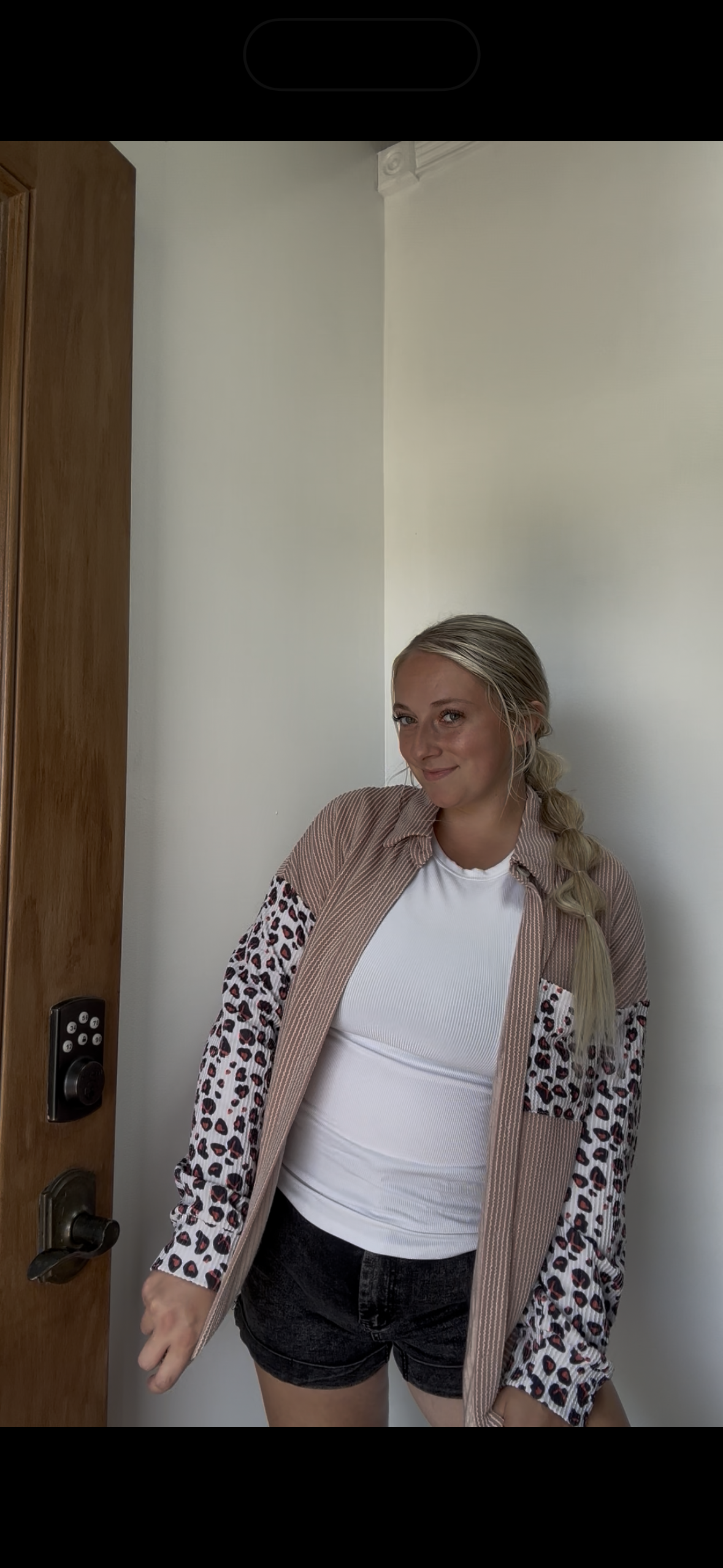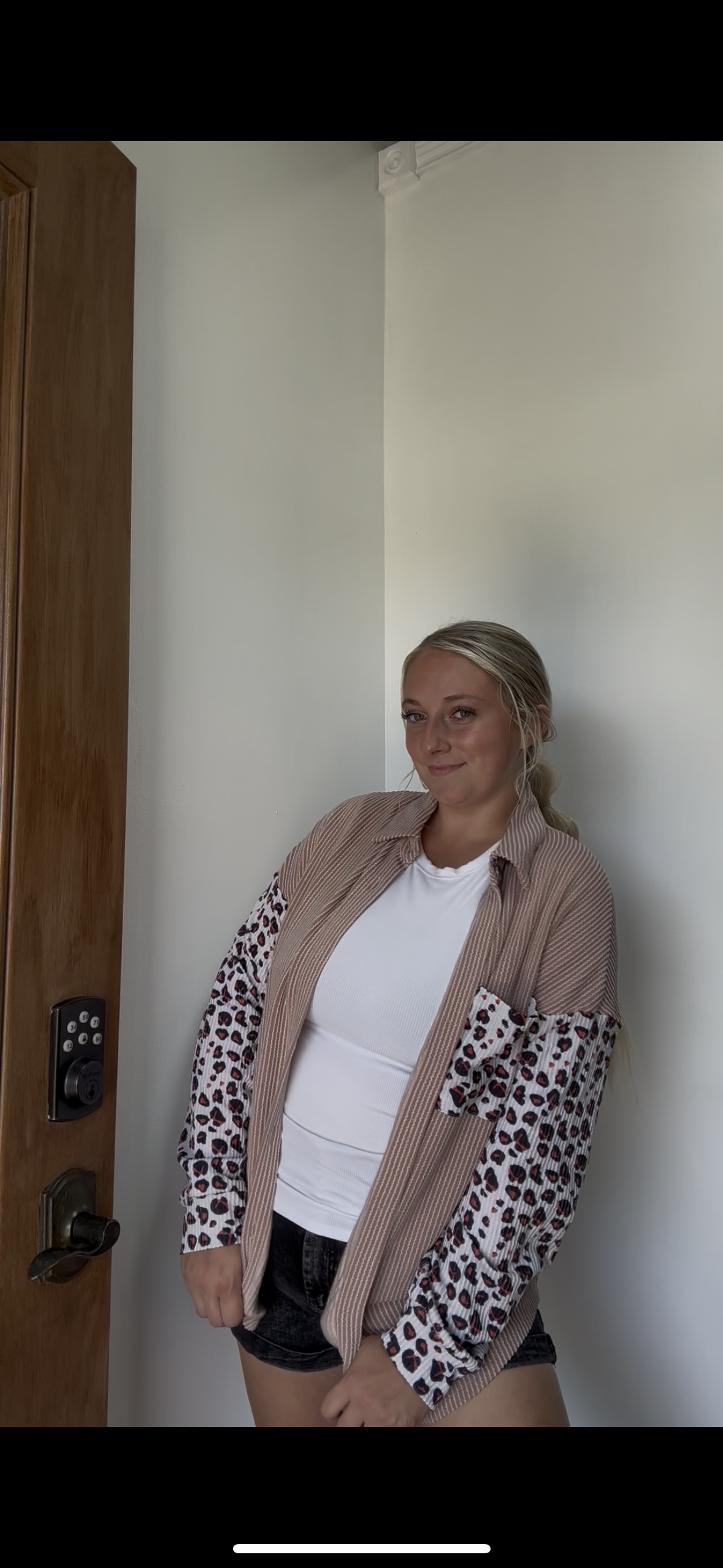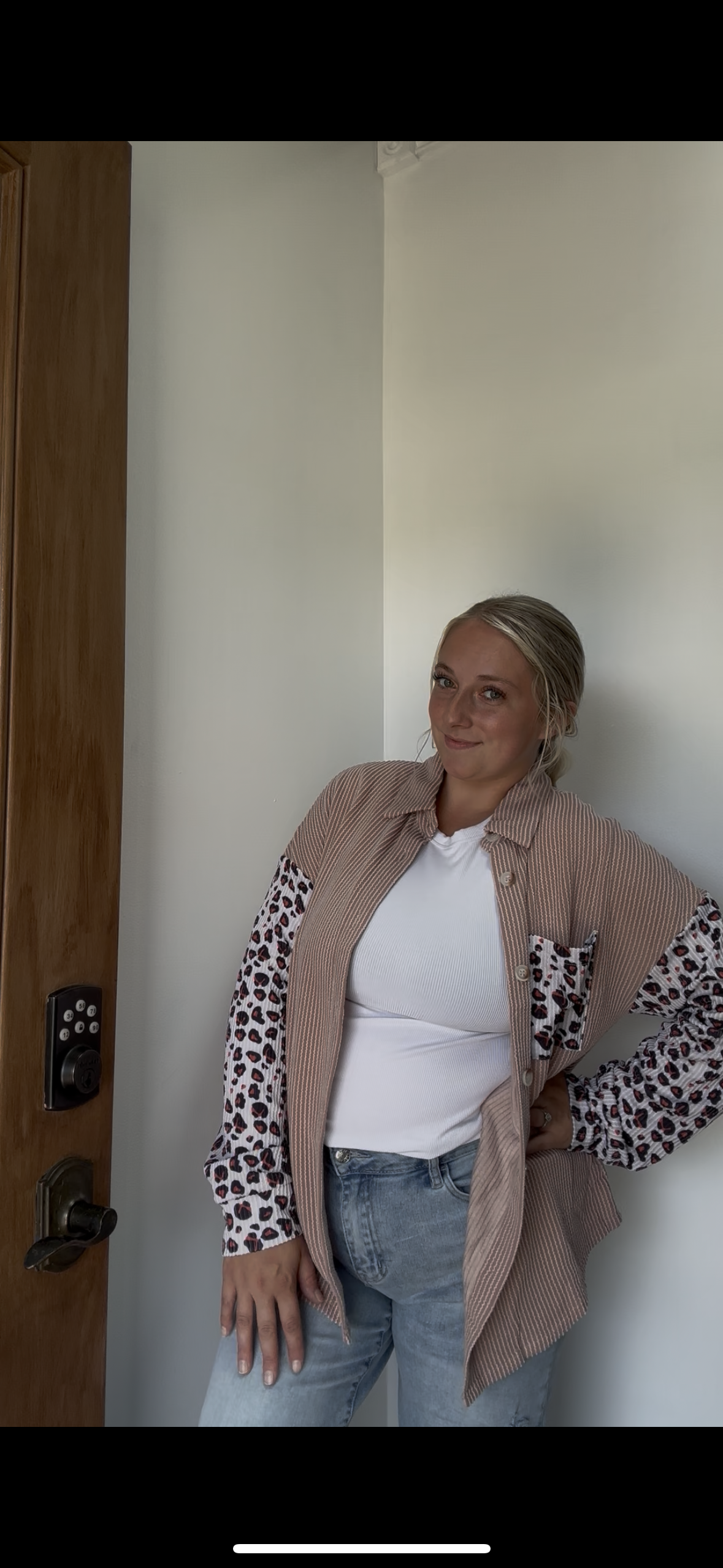 Fashion-W Leopard Patched Twisted Ribbed Western Shacket