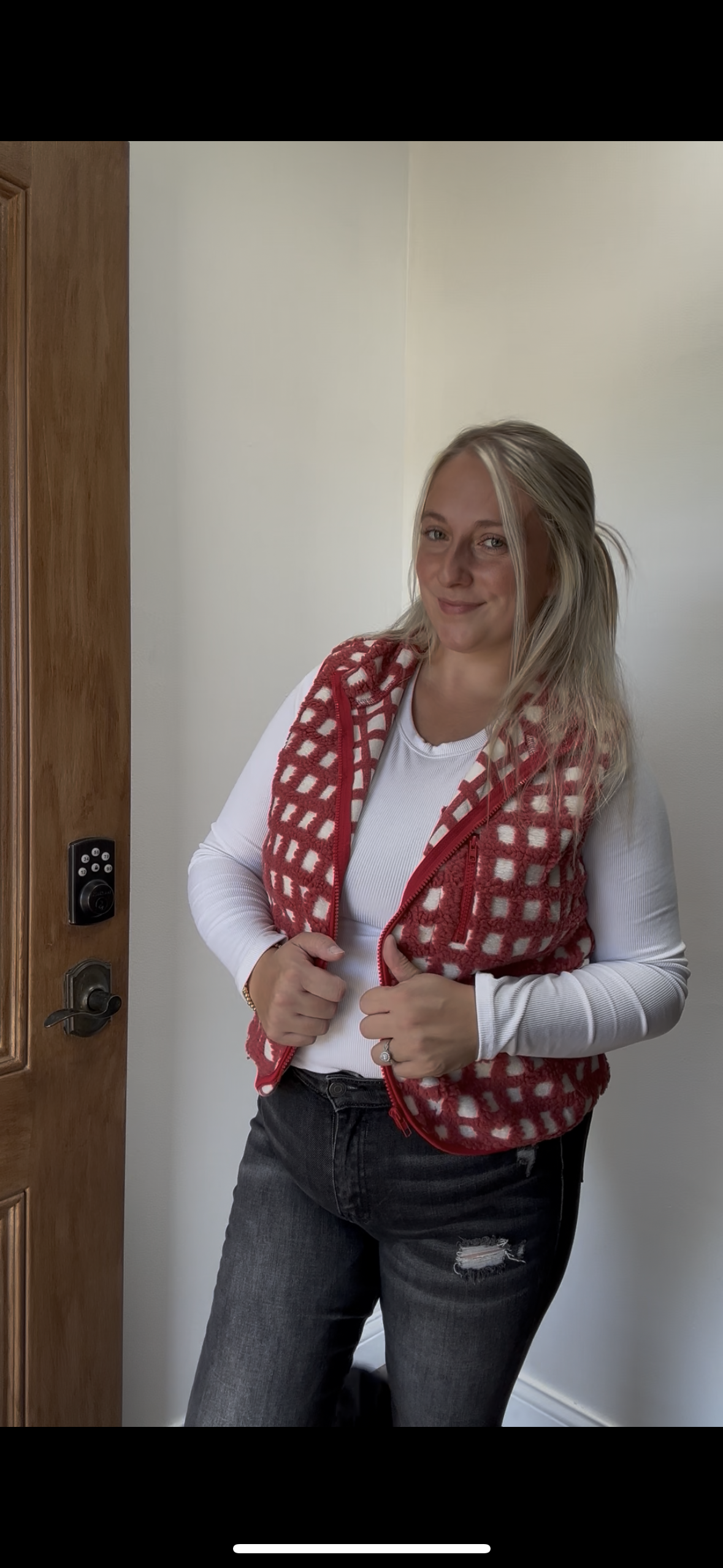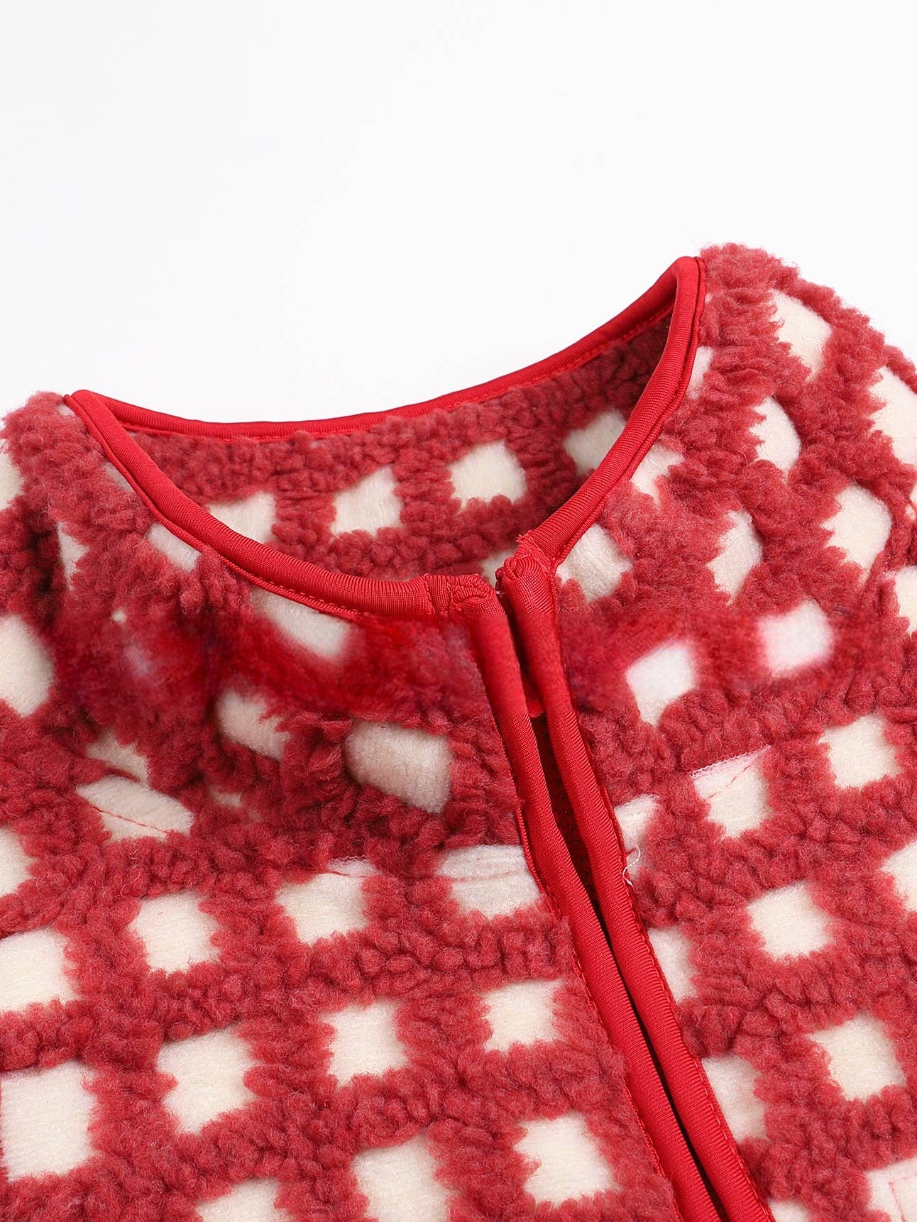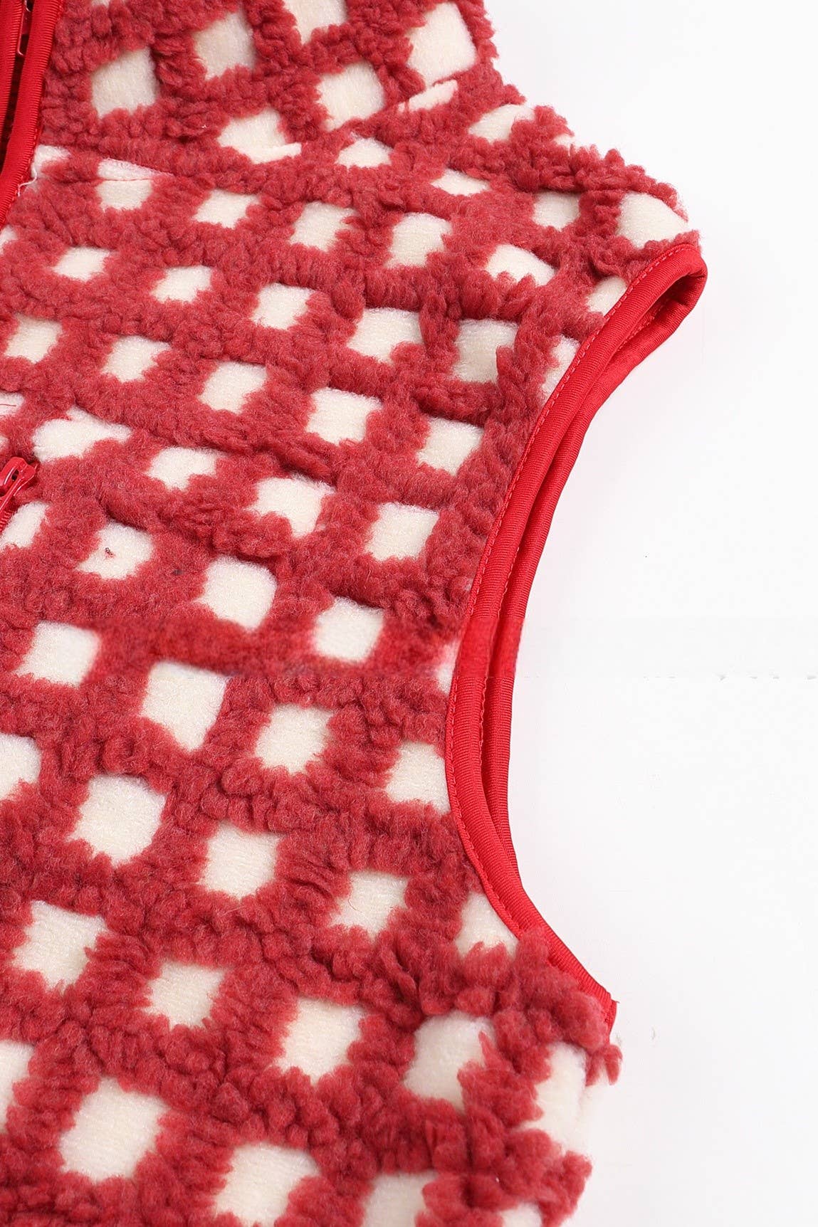 Versatile Contrast Checkered Sherpa Fleece Zip Vest