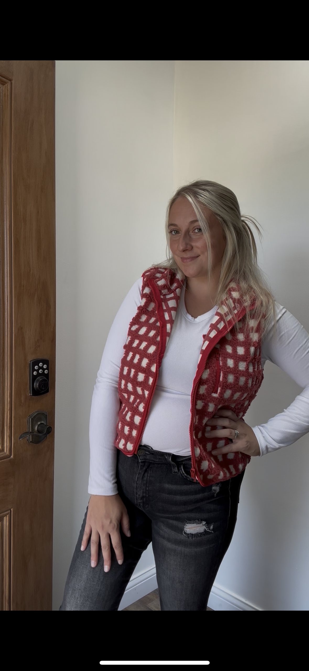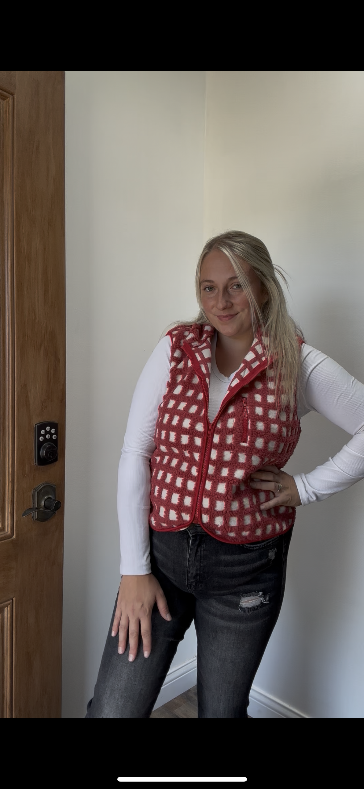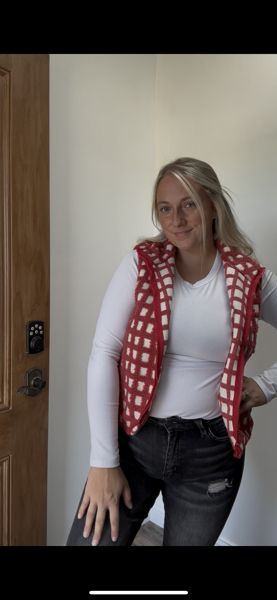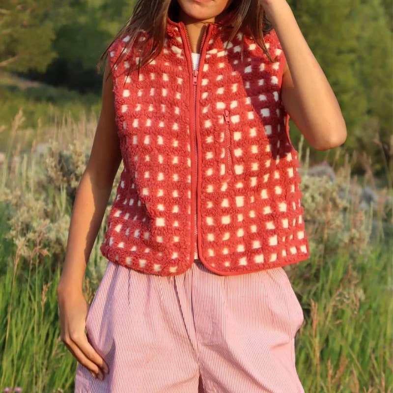 Versatile Contrast Checkered Sherpa Fleece Zip Vest